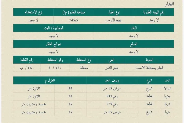 | العقار | الحي | الوصف | السعر |