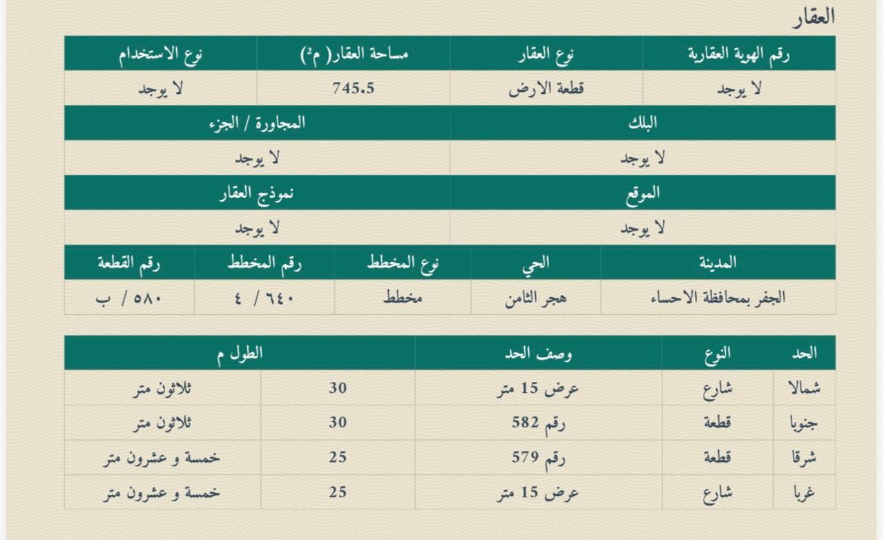580 / ب المساحة 745.5 |